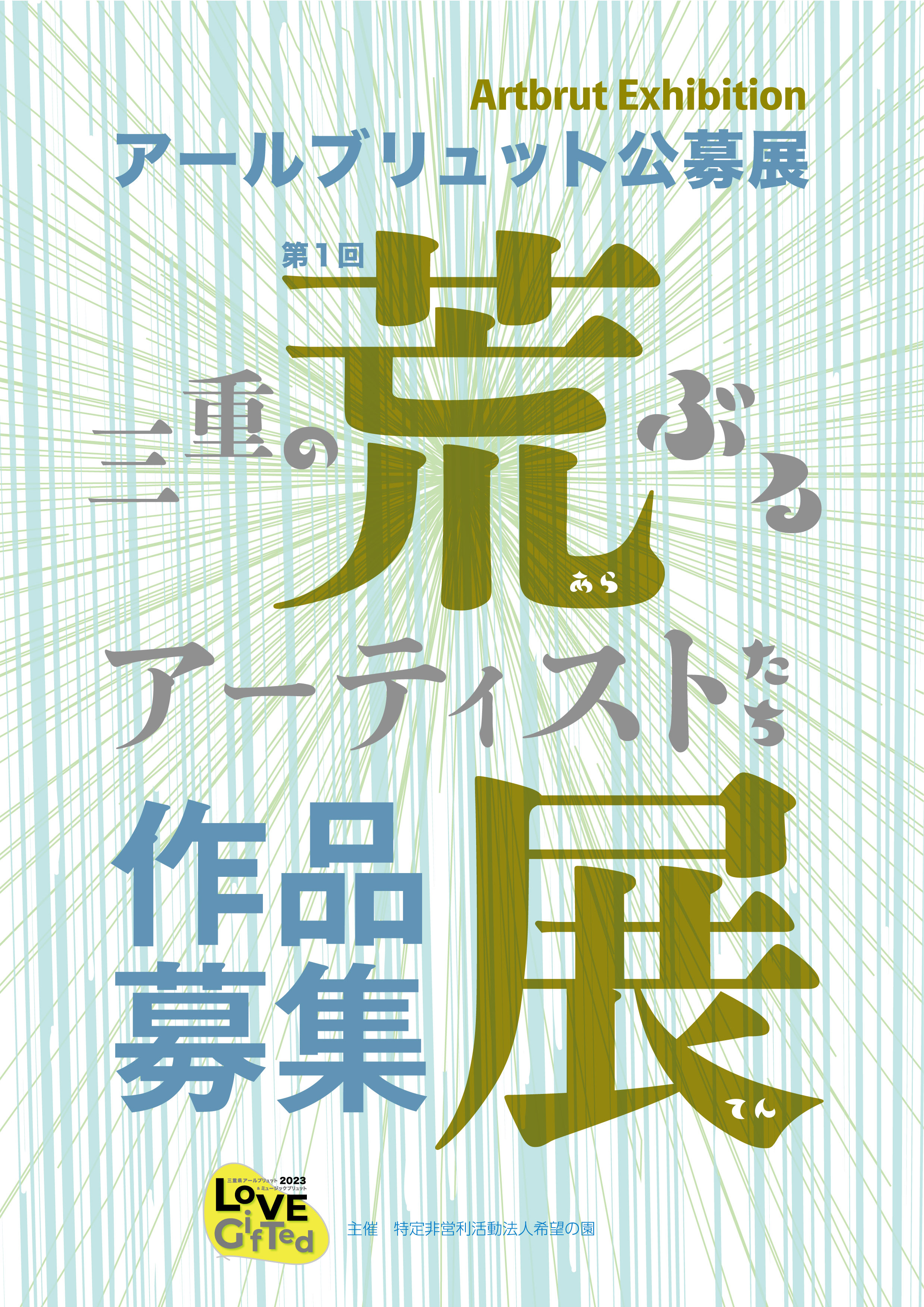 アールブリュット公募展「第1回三重の荒ぶるアーティストたち展2023」では三重県在住で、障がいのあるアーティストたちの作品を募集します。 絵画や彫刻などの立体作品はもちろんのこと、パフォーマンスやインスタレーションetc…