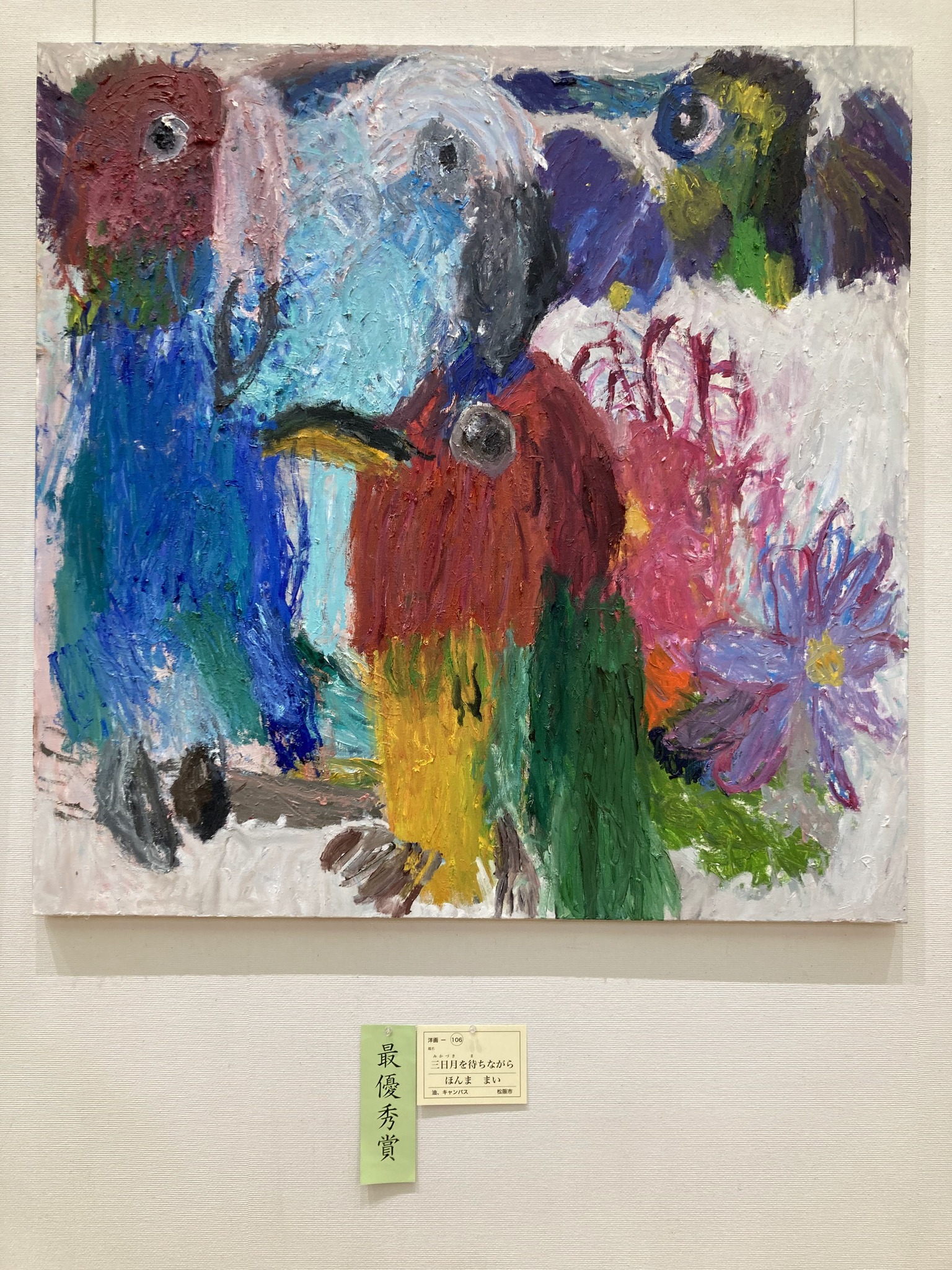 「令和6年度みえ文化芸術祭 第74回 みえ県展」で、洋画の最優秀賞を、ほんままい さんの「三日月を待ちながら」が受賞しました!油絵や色鉛筆(クーピー)での絵画制作を得意とし、描き始めて20年になる ほんまさんは、今回ついに最優秀賞に到達しました!